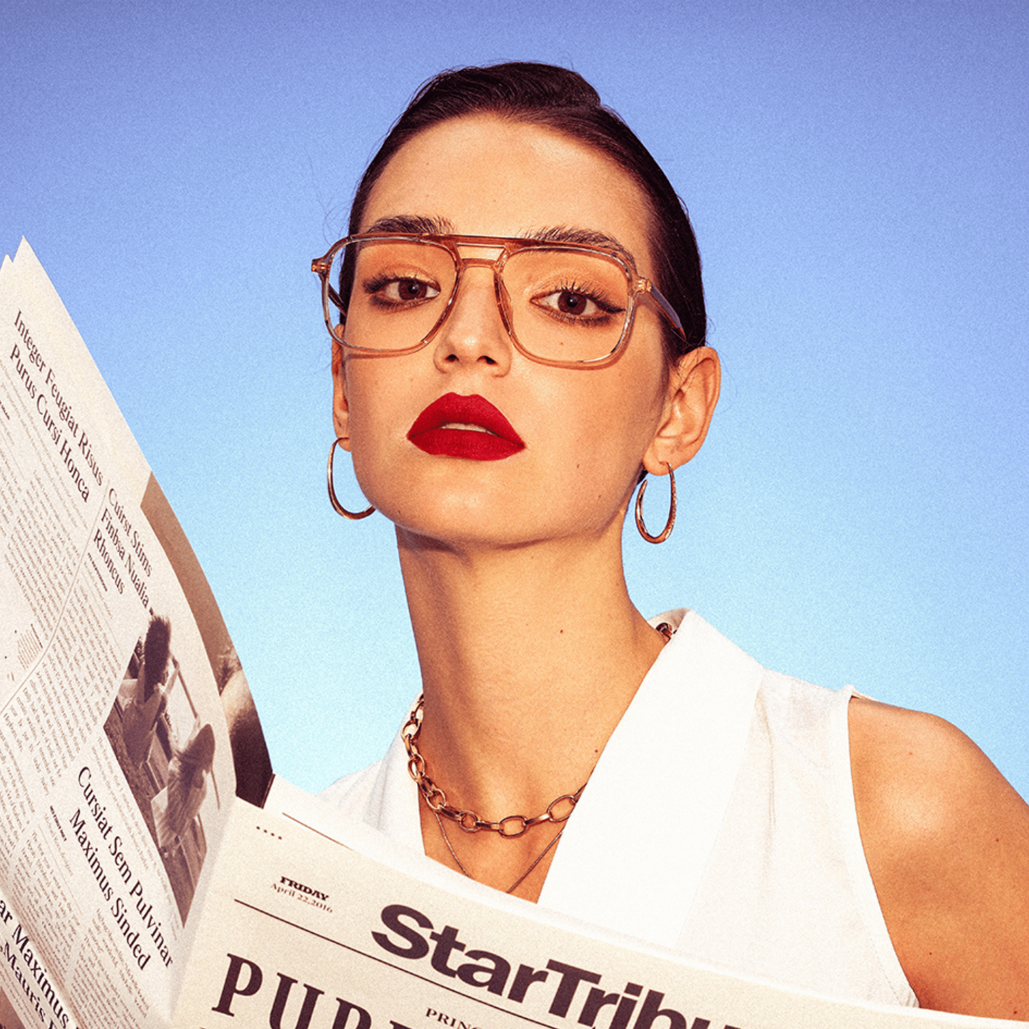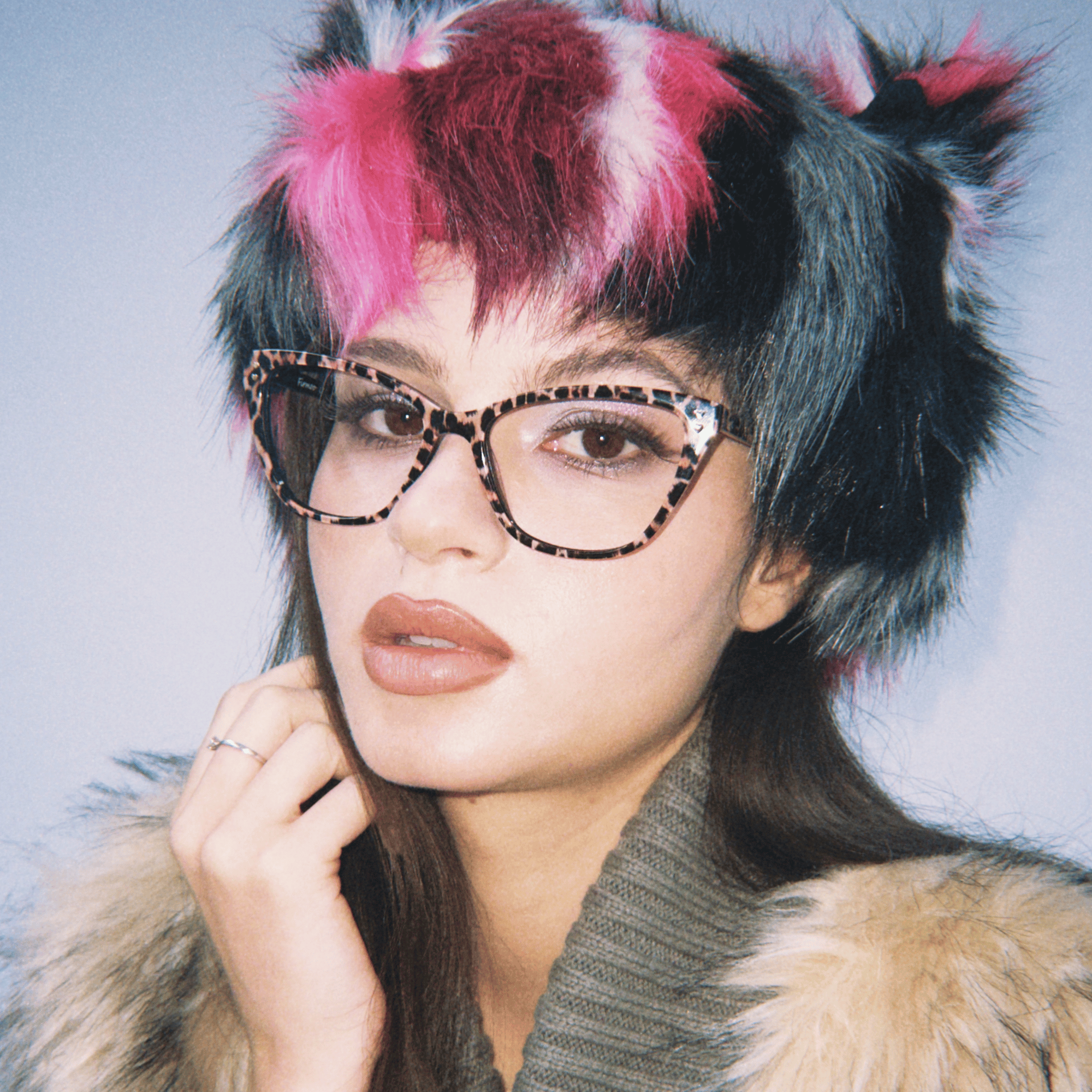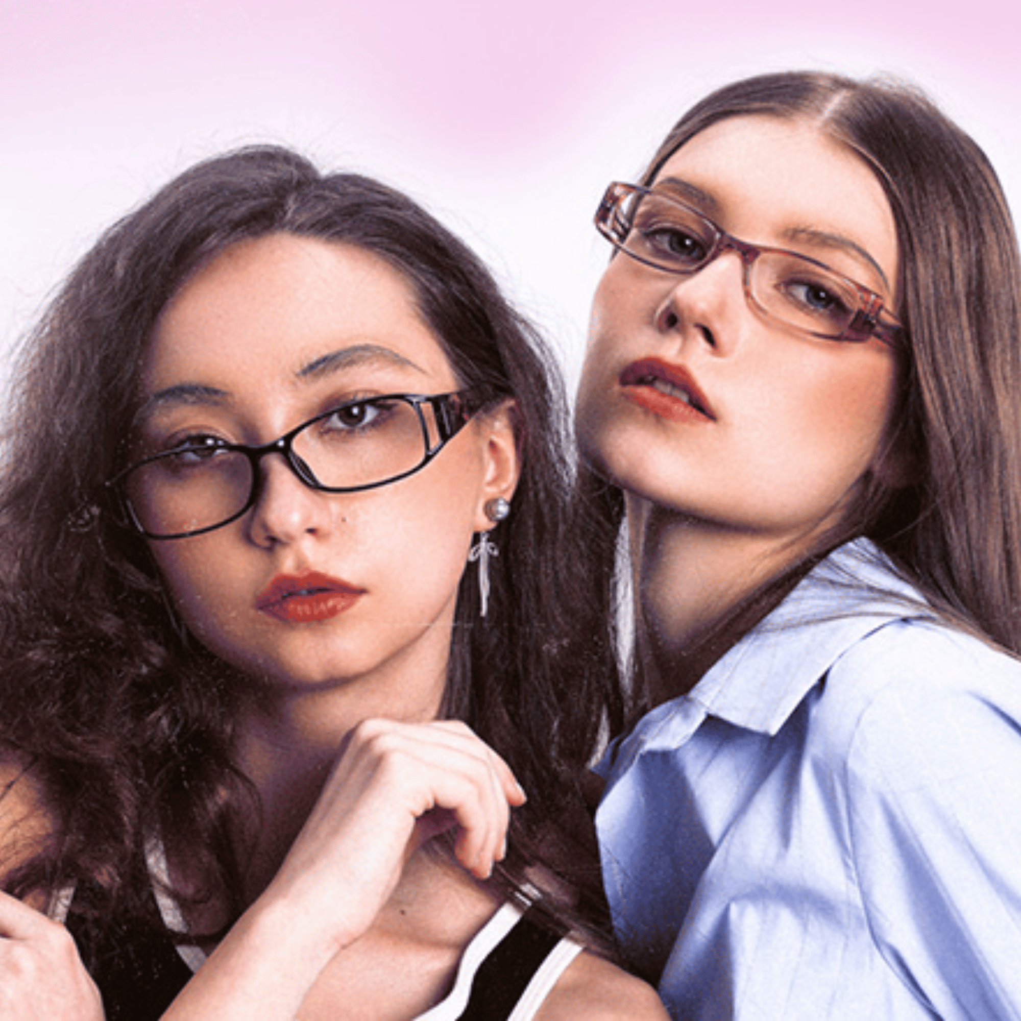 Y2K attitude with flat oval frames. Narrow, knowing, and a little bit fierce.